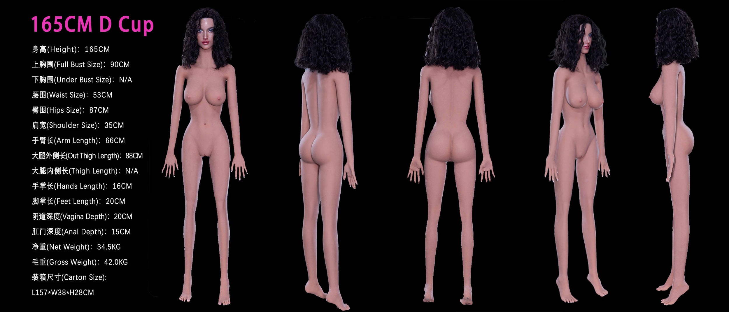 Karla is a 165cm hybrid Asian doll with balanced D-cup proportions. Her TPE body softness and silicone head realism create exceptional quality.